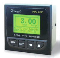 | DZG-8251型電阻率儀 | 概況: DZG-8251型電阻率儀采用MCU技術(shù)進(jìn)行數(shù)字化測量和非線性溫度曲線補(bǔ)償。選用12864點(diǎn)陣式液晶顯示器,全英文操作菜單,廣泛適用于化工、制藥、電力等行業(yè)制水設(shè)備在線高純水電阻率值的測量和監(jiān)控。 主要技術(shù)性能: ·測量范圍:0.00~18.25MΩ·cm;(0~20.00μS/cm) ·溫度補(bǔ)償:具有自動溫度補(bǔ)償,補(bǔ)償范圍0~60℃,補(bǔ)償基準(zhǔn)25℃,溫度補(bǔ)償元件:NTC10KΩ; ·顯示方式:選用12864點(diǎn)陣式背光液晶顯示器,同屏幕顯示電阻率值,對應(yīng)電導(dǎo)率值,當(dāng)前溫度值及日期時鐘等參數(shù),有效顯示尺寸:54×36(mm); ·測量精度:±1%(F·S); ·電極配置:0.01不銹鋼電極,4'管道式螺紋,導(dǎo)線標(biāo)準(zhǔn)配置長度5m; ·報警控制輸出:本儀器具有電阻率下限報警設(shè)置或電導(dǎo)率上限報警設(shè)置及控制觸點(diǎn)信號輸出, 觸點(diǎn)容量:220VAC/7A; · 電流信號輸出:本儀器具有標(biāo)準(zhǔn)隔離型4~20mA正向或逆向電流信號輸出,4mA值和20mA值的工況值可根據(jù)用戶的要求任意設(shè)置,確保輸出精度,輸出負(fù)載≥500Ω;如選擇顯示電阻率值,則·輸出電阻率值對應(yīng)電流信號;選擇電導(dǎo)率值顯示時,則輸出對應(yīng)電導(dǎo)率值的電流信號; ·RS-232C通訊接口輸出:本儀器具有標(biāo)準(zhǔn)RS-232C串行口輸出,可同具有此接口的智能型儀器相連接,實(shí)現(xiàn)測量數(shù)據(jù)的傳輸及記錄。如計(jì)算機(jī)、打印機(jī)等; ·實(shí)時時鐘功能:本儀器具有實(shí)時時鐘功能,可實(shí)時記錄測量數(shù)據(jù); ·儀器供電:220VAC±10%?? 50Hz; ·儀器尺寸: 面框尺寸:96×96(mm) 開孔尺寸:91×91(mm) 儀器深度:100(mm)·產(chǎn)品檢驗(yàn)依據(jù):Q/TDCB02-2007; |
